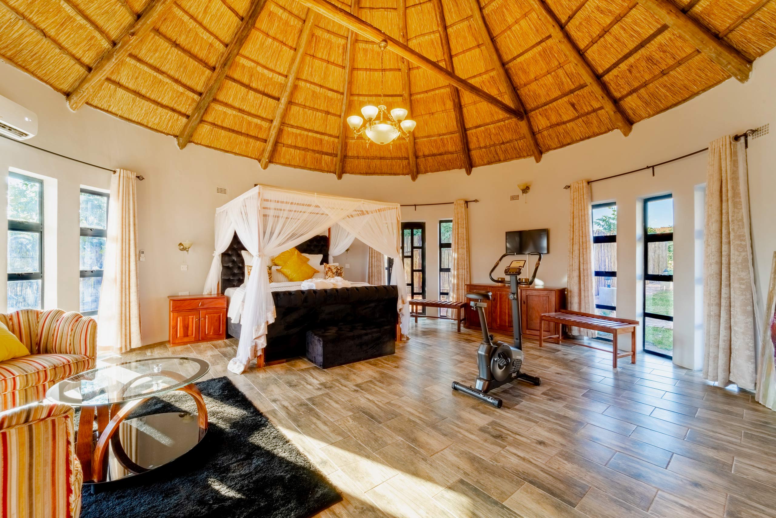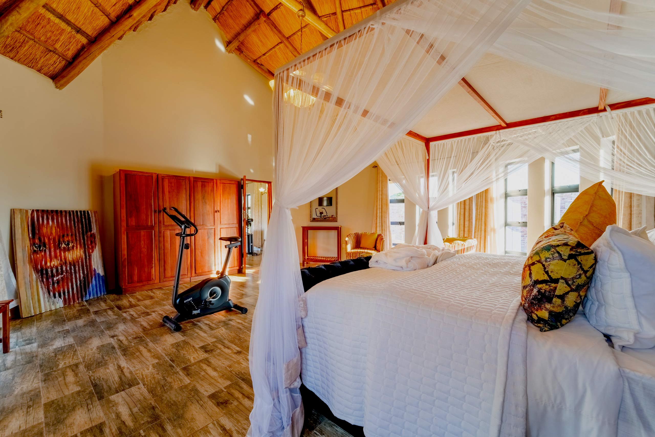 For added comfort and convenience, the suite includes an office station, exercise bike, and air conditioning. Step outside to your private pool and garden, where you can unwind and savor the tranquility of your surroundings.
